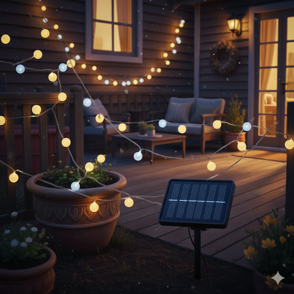 Las luces solares T-Day se cargan durante el día y se encienden solas al atardecer. Decorá tu hogar sin cables ni consumo eléctrico.